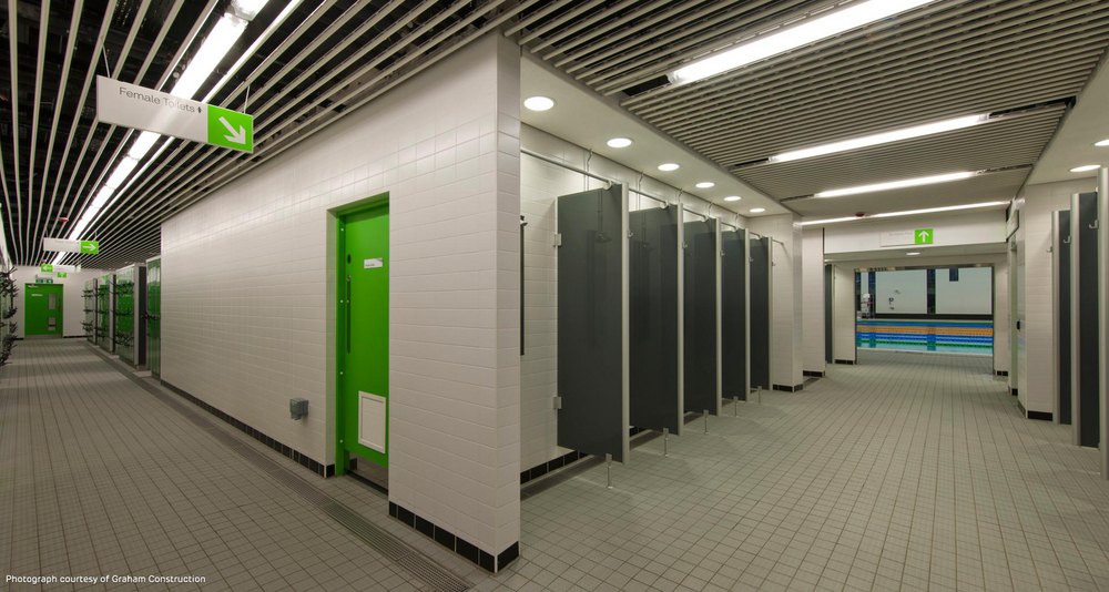 The build of the Aberdeen Sports Village Aquatics Centre enables Aberdeen to host national and international swimming and diving competitions alongside providing world-class facilities for new swimmers and the local community. Comprising of a 10-lane 50m Olympic pool with a dividing boom and part floating floor, a 25m x 16.5m diving pool and 600-seat spectator gallery, the centre is the premier sport and exercise facility in Scotland. It played host to 3rd Commonwealth Water Polo Championships in the 2014 Commonwealth Games. The unique qualities and environment of the centre, where conventional plasterboard would have been unsuitable, certainly required a unique product. Siniat Aqua Board was used which contains additives which protect against mould and fungus damage and it's special nonwoven coating which can be directly tiled or painted, making it ideal for use in leisure facilities including swimming pools and sports shower facilities.
